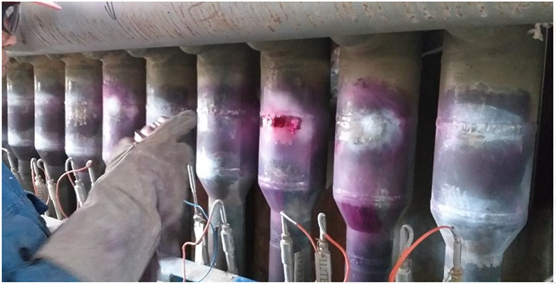 另外,在炉管温度交变较明显的区域会存在由于热应力的作用产生的疲劳裂纹。PT检测是检表面缺陷最直观的评定方法